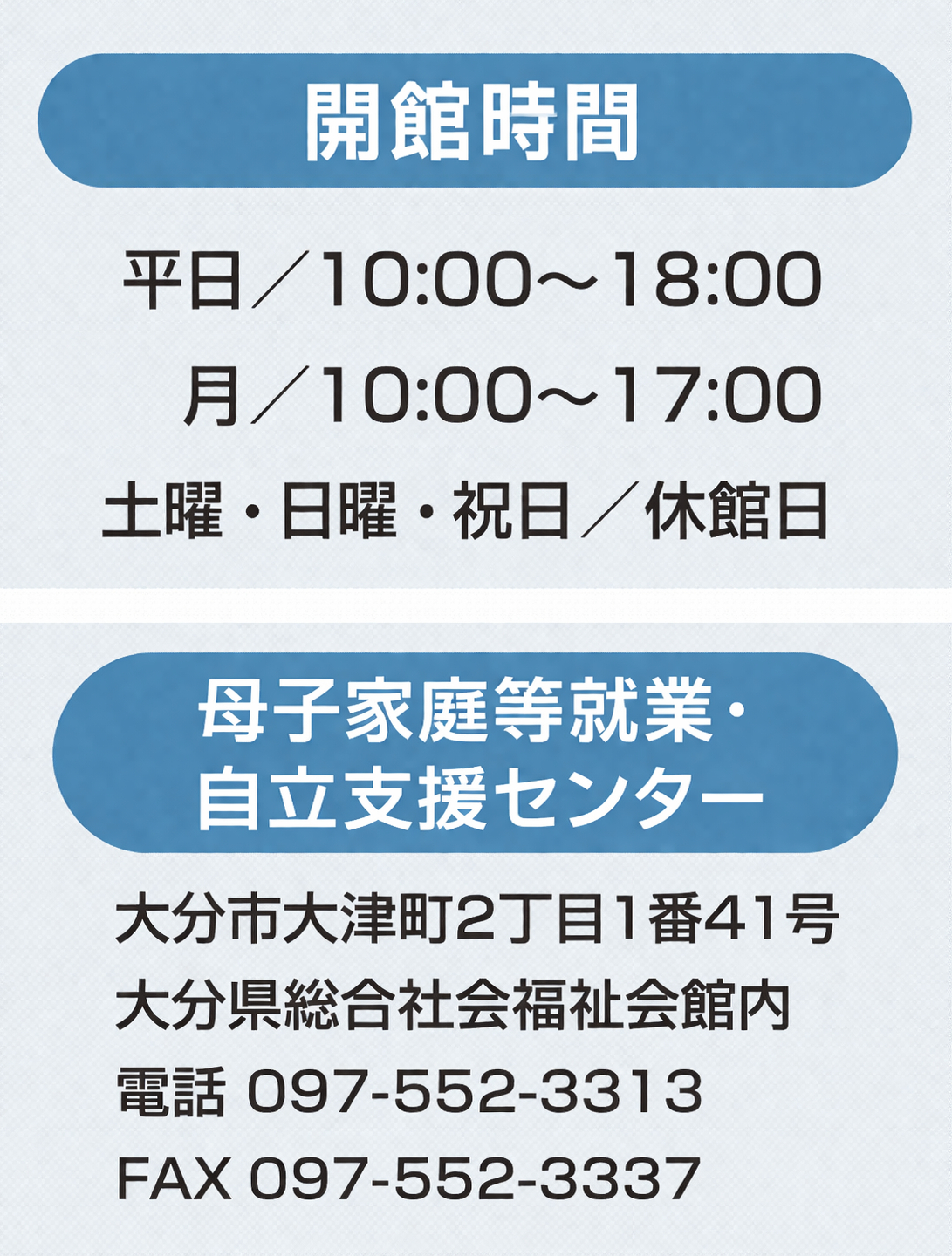 大分県ひとり親家庭福祉連合会は、厚生労働大臣の許可を受け、平成16年8月1日、大分県母子寡婦無料職業紹介所を開設し、